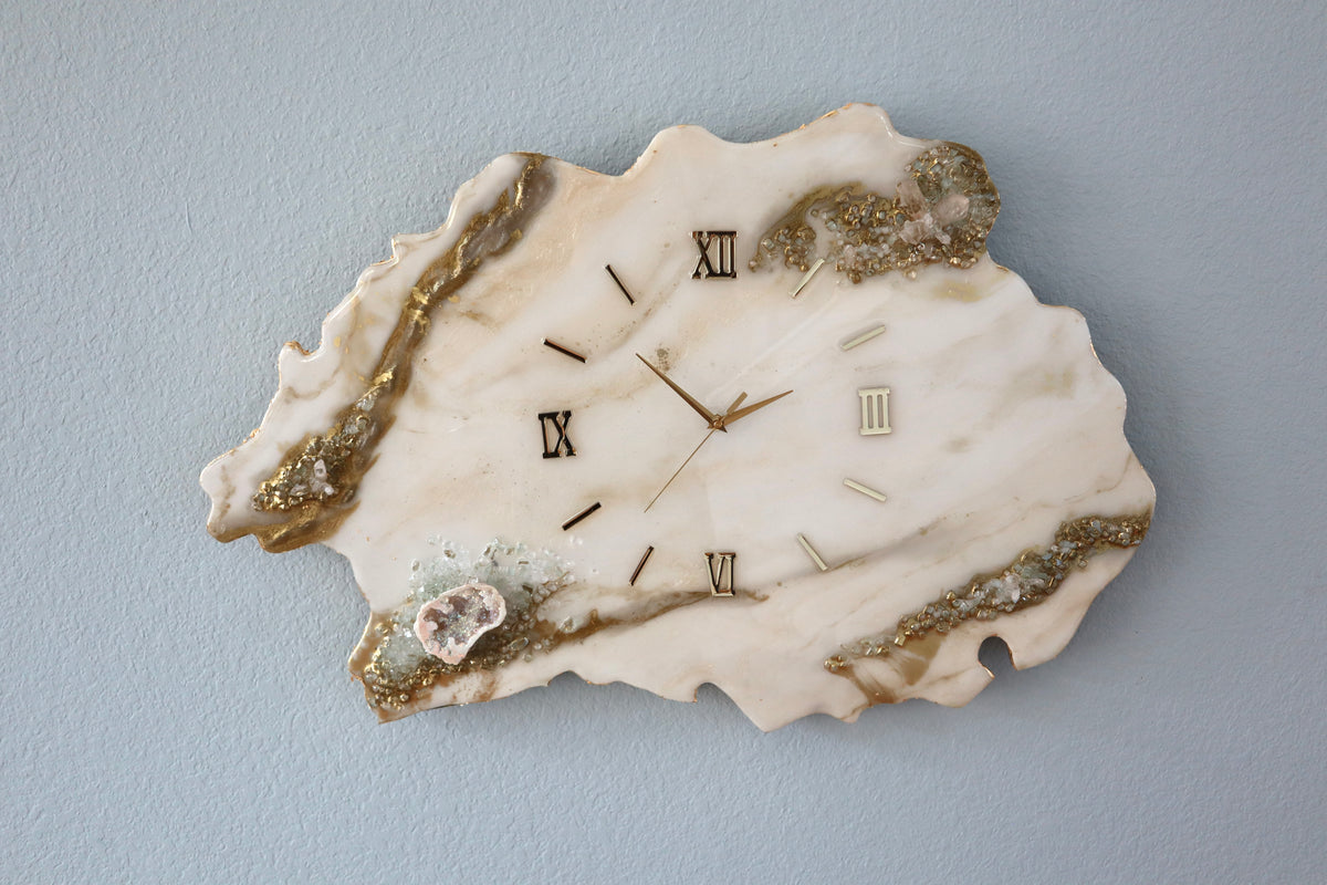 Isabella Demetral is an Austin based resin artist originally from Ann Arbor, Michigan. Her work explores the intersection of crystals, light, and functional design through one-of-a-kind resin crystal clocks and sculptural centerpieces that serve as both art and statement décor.